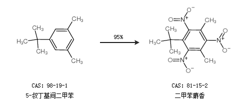 1.通过5-叔丁基间二甲苯合成二甲苯麝香,收率约95%;