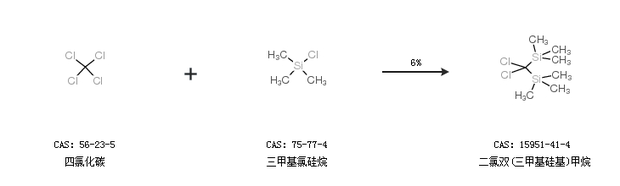 1.通过四氯化碳和三甲基氯硅烷合成二氯双(三甲基硅基)甲烷,收率约6%;