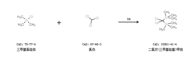 2.通过三甲基氯硅烷和氯仿合成二氯双(三甲基硅基)甲烷,收率约5%;