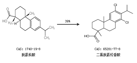 1.通过脱氢枞酸合成二氯脱氢松香酸,收率约39%;