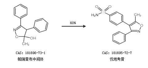 1.通过帕瑞昔布中间体合成伐地考昔,收率约60%;