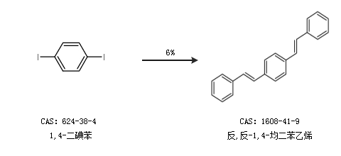 2.通过1,4-二碘苯合成反,反-1,4-均二苯乙烯,收率约6%;
