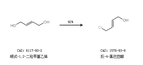 1.通过顺式-1,2-二羟甲基乙烯合成反-4-氯巴豆醇,收率约92%;