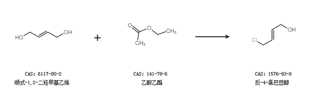 2.通过顺式-1,2-二羟甲基乙烯和乙酸乙酯合成反-4-氯巴豆醇