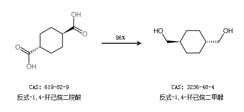 2.通过反式-1,4-环己烷二羧酸合成反式-1,4-环已烷二甲醇,收率约96%;