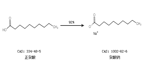 1.通过正癸酸合成癸酸钠,收率约92%;