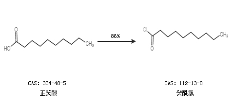1.通过正癸酸合成癸酰氯,收率约86%;