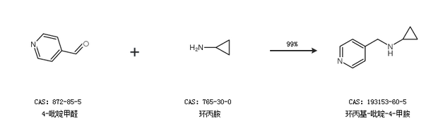 1.通过4-吡啶甲醛和环丙胺合成环丙基-吡啶-4-甲胺,收率约99%;