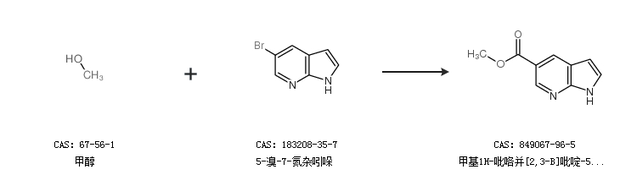 1.通过甲醇和5-溴-7-氮杂吲哚合成甲基1H-吡咯并[2,3-B]吡啶-5-甲酸酯
