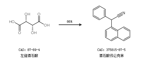 1.通过左旋酒石酸合成酒石酸伐仑克林,收率约86%;