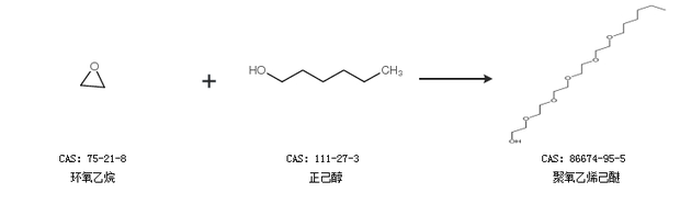 1.通过环氧乙烷和正己醇合成聚氧乙烯己醚
