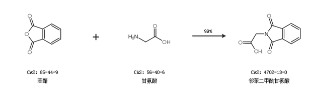 1.通过苯酐和甘氨酸合成邻苯二甲酰甘氨酸,收率约99%;