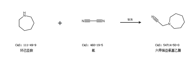 1.通过环己亚胺和氰合成六甲烯亚氨基乙腈,收率约91%;
