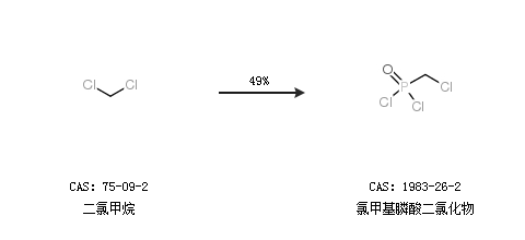 1.通过二氯甲烷合成氯甲基膦酸二氯化物,收率约49%;