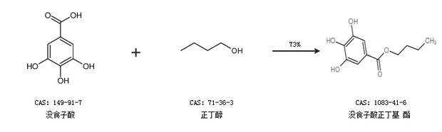 1.通过没食子酸和正丁醇合成没食子酸正丁基 酯,收率约73%;