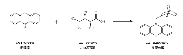 1.通过吩噻嗪和左旋酒石酸合成美喹他嗪