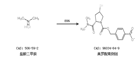 1.通过盐酸二甲胺合成美罗配南侧链,收率约89%;