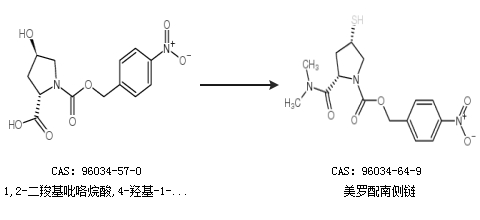 2.通过1,2-二羧基吡咯烷酸,4-羟基-1-[(4-硝基苯基)甲基]酯合成美罗配南侧链