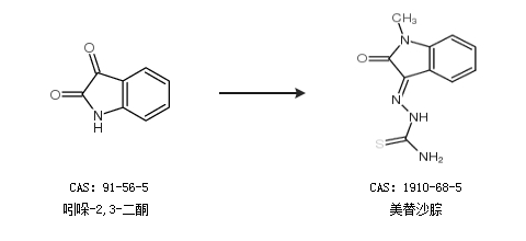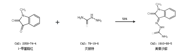 1.通过1-甲基靛红和灭鼠特合成美替沙腙,收率约58%;