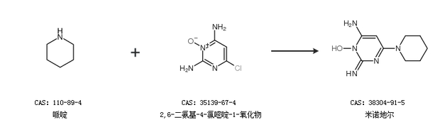 中文别名 6-(1-哌啶基)-2,4-嘧啶二胺-3-氧化物;长压定;敏乐啶;