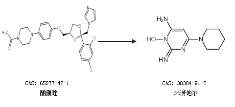 英文别名 2,4-diamino-6-piperidino-pyrimidine-3-oxide;3-hydroxy-2-imino-6-piperidin-1-ylpyrimidin-4-amine;Rogaine;Loniten;2,6-Diamino-4-piperidinopyrimidine 1-Oxide;Alostil;Tricoxidil;Regaine;Minoximen;Theroxidil;Lonolox;2,6-Diamino-4-(piperidin-1-yl)pyrimidine 1-oxide;6-(1-Piperidinyl)-2,4-pyrimidinediamine 3-oxide (6-(1-Piperidinyl)pyrimidine-2,4-diamine 3-oxide;6-(1-Piperidinyl)-2,4-pyrimidinediamine 3-oxide 6-(1-Piperidinyl)pyrimidine-2,4-diamine 3-oxide;