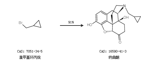 1.通过溴甲基环丙烷合成纳曲酮,收率约91%;
