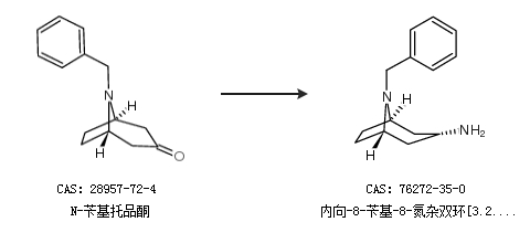 1.通过N-苄基托品酮合成内向-8-苄基-8-氮杂双环[3.2.1]辛烷-3-胺