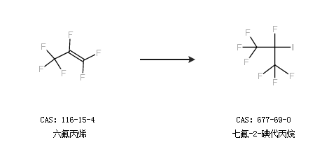 1.通过六氟丙烯合成七氟-2-碘代丙烷,收率约76%;