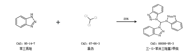 2.通过苯三氮唑和氯仿合成三-(1-苯并三唑基)甲烷,收率约20%;