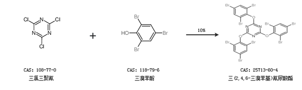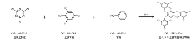 1.通过三氯三聚氰、三溴苯酚和苯酚合成三(2,4,6-三溴苯基)氰尿酸酯,收率约98%;
