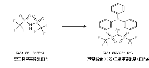 中文名称 三苯基膦金(I)双(三氟甲磺酰基)亚胺盐