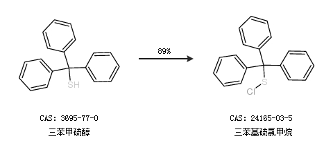 1.通过三苯甲硫醇合成三苯基硫氯甲烷,收率约89%;