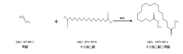 2.通过甲醇和十八烷二酸合成十八烷二酸二甲酯,收率约96%;