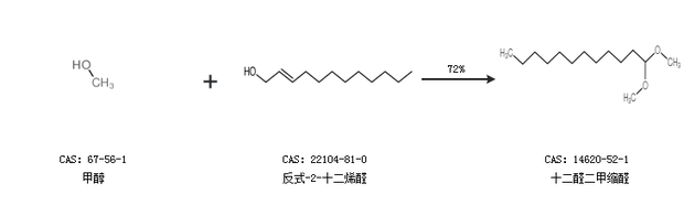 2.通过甲醇和反式-2-十二烯醛合成十二醛二甲缩醛,收率约72%;