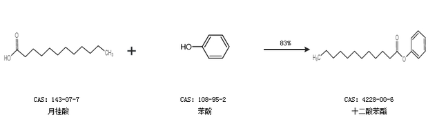 2.通过月桂酸和苯酚合成十二酸苯酯,收率约83%;