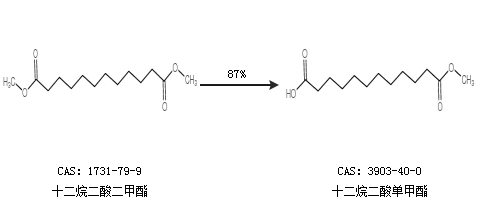 1.通过十二烷二酸二甲酯合成十二烷二酸单甲酯,收率约87%;