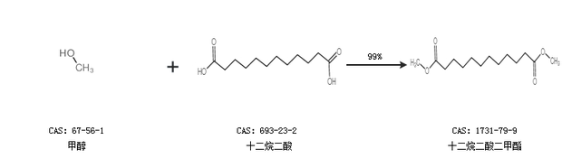 1.通过甲醇和十二烷二酸合成十二烷二酸二甲酯,收率约99%;