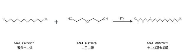 1.通过溴代十二烷和二乙二醇合成十二烷基卡必醇,收率约57%;