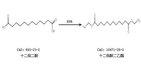 1.通过十二烷二酸合成十二烷酸二乙酯,收率约69%;