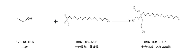 2.通过乙醇和十六烷基三氯硅烷合成十六烷基三乙氧基硅烷