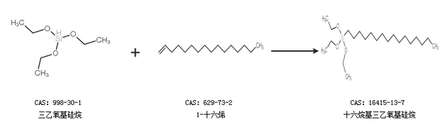 1.通过三乙氧基硅烷和1-十六烯合成十六烷基三乙氧基硅烷