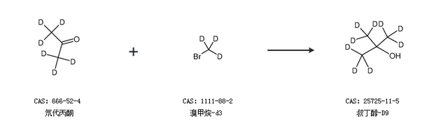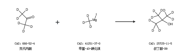 1.通过氘代丙酮和溴甲烷-d3合成叔丁醇-D9