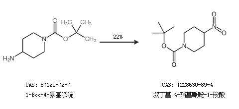 1.通过1-Boc-4-氨基哌啶合成叔丁基 4-硝基哌啶-1-羧酸,收率约22%;