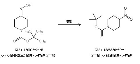 2.通过4-(羟基亚氨基)哌啶-1-羧酸叔丁酯合成叔丁基 4-硝基哌啶-1-羧酸,收率约55%;