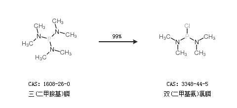 1.通过三(二甲胺基)膦合成双(二甲基氨)氯膦,收率约99%;