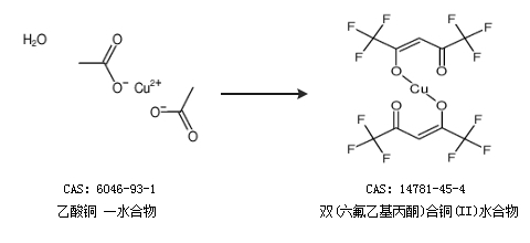 2.通过乙酸铜 一水合物合成双(六氟乙基丙酮)合铜(II)水合物