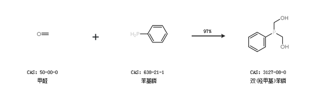 1.通过甲醛和苯基膦合成双(羟甲基)苯膦,收率约97%;