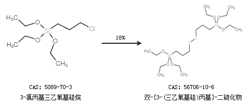 1.通过3-氯丙基三乙氧基硅烷合成双-[3-(三乙氧基硅)丙基]-二硫化物,收率约1%;