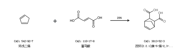 1.通过环戊二烯和富马酸合成双环[2.2.1]庚-5-烯-2,3-二甲酸,收率约28%;