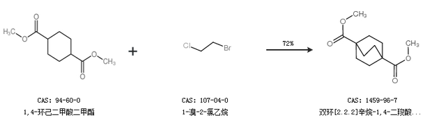 2.通过1,4-环己二甲酸二甲酯和1-溴-2-氯乙烷合成双环[2.2.2]辛烷-1,4-二羧酸二甲酯,收率约72%;